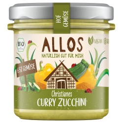 Bringt Sie im Handumdrehen nach bella Italia: Cremige Auberginen und aromatische Zucchini ergeben zusammen ein echtes Traumpaar. Allos hat die beiden liebevoll zu diesem Bio-Brotaufstrich verarbeitet, der mit feinen Gewürzen kunstvoll veredelt wird. Ob aufs Brot oder zum Dippen - diese kleine Köstlichkeit macht einfach riesig Spaß. / Zutaten: Zucchini* (43%), Auberginen* (20%), Sonnenblumenöl*, Sonnenblumenkerne*, Rote-Bete-Saftkonzentrat*, Agavendicksaft*, Kartoffelstärke*, Zitronensaftkonzentrat*, Zwiebelpulver*, Meersalz, Knoblauchpulver*, Rauchsalz (Meersalz, Erlenholzrauch), Verdickungsmittel: Johannisbrotkernmehl*, PFEFFER* schwarz